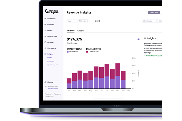 Hybrid workspace management is fully integrated with the Flexspace AI ecommerce revenue platform, which features automation, a booking engine, and marketing workflows. This ensures hybrid usage patterns inform broader business decisions across the platform.